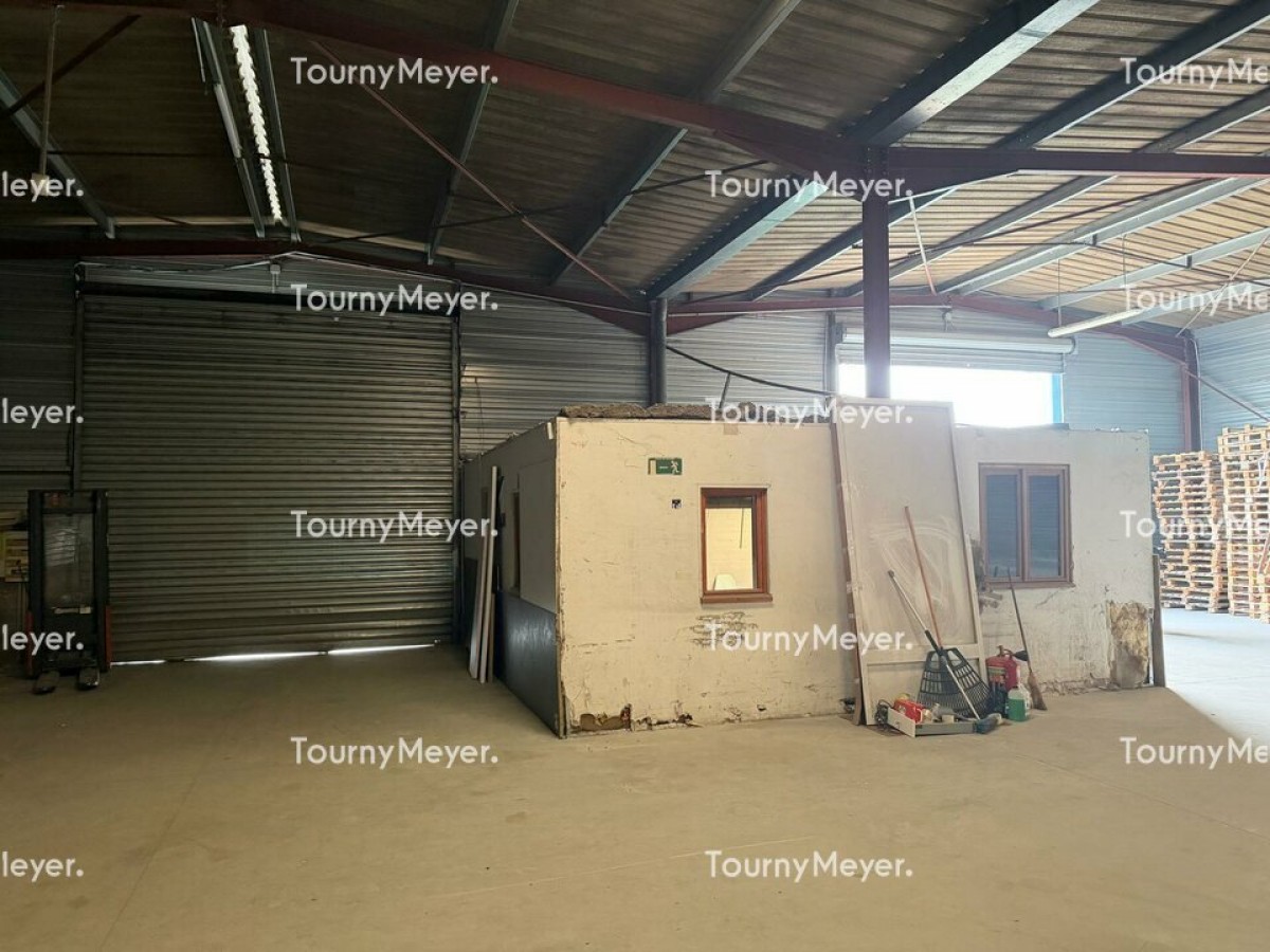 Une zone d'entrepôt d'environ 730 m² avec porte sectionnelle.