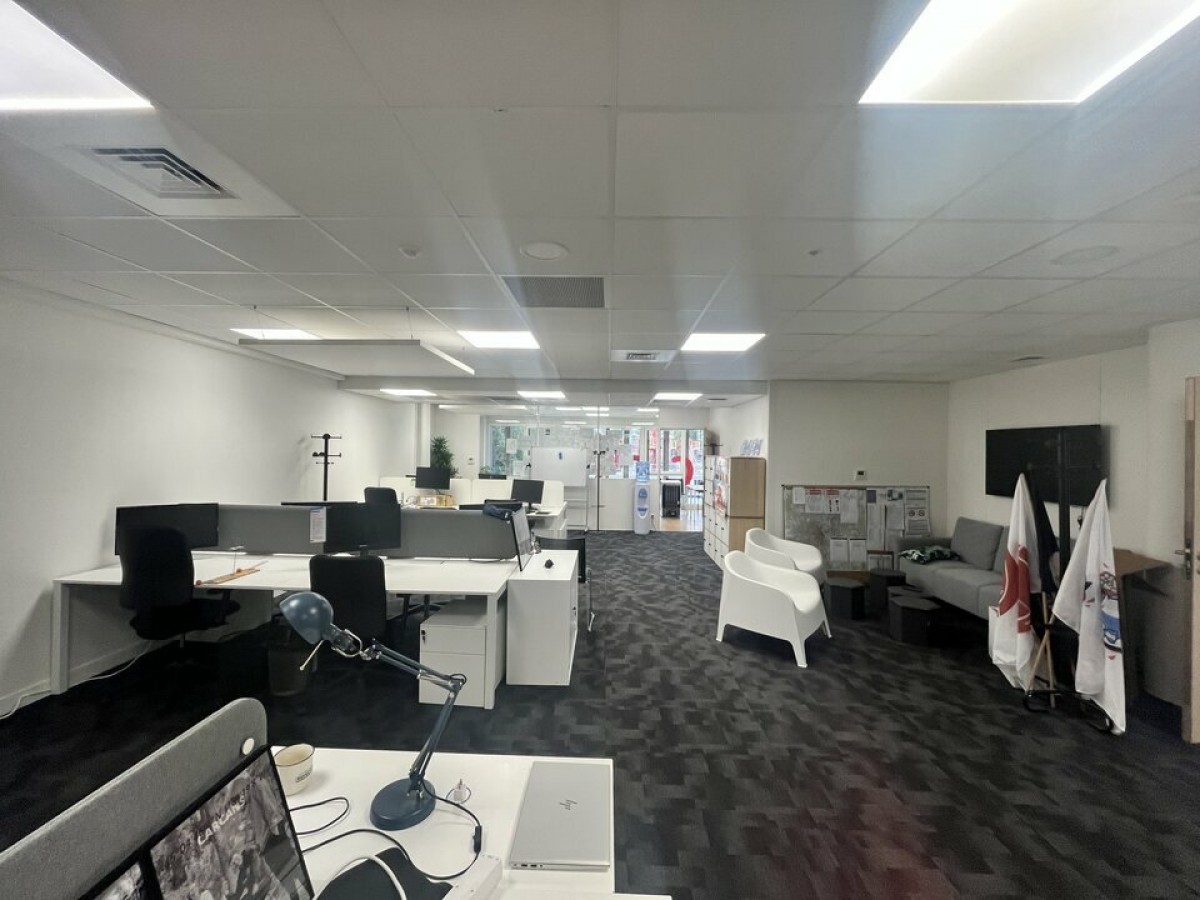 Plateau aménagé et cloisonné en 5 bureaux simple, deux open-space, une salle de réunion, une cafétéria, une salle technique