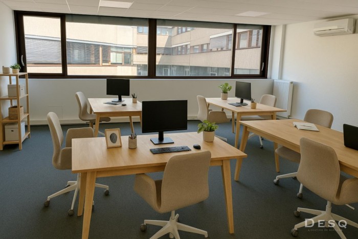 Nous pouvons également avoir d’autres bureaux de 15m2 à 120m2 et un coworking à 190 € HT la place, visibles sur www.desq.fr