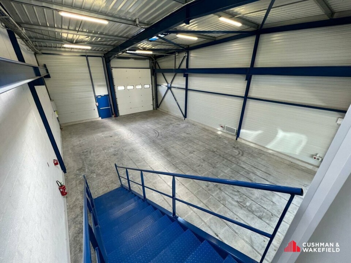 Local d'activité de 252 m² dont 198 m² d'activité au sol et 54 m² de bureaux en mezzanine aménagés et climatisés.