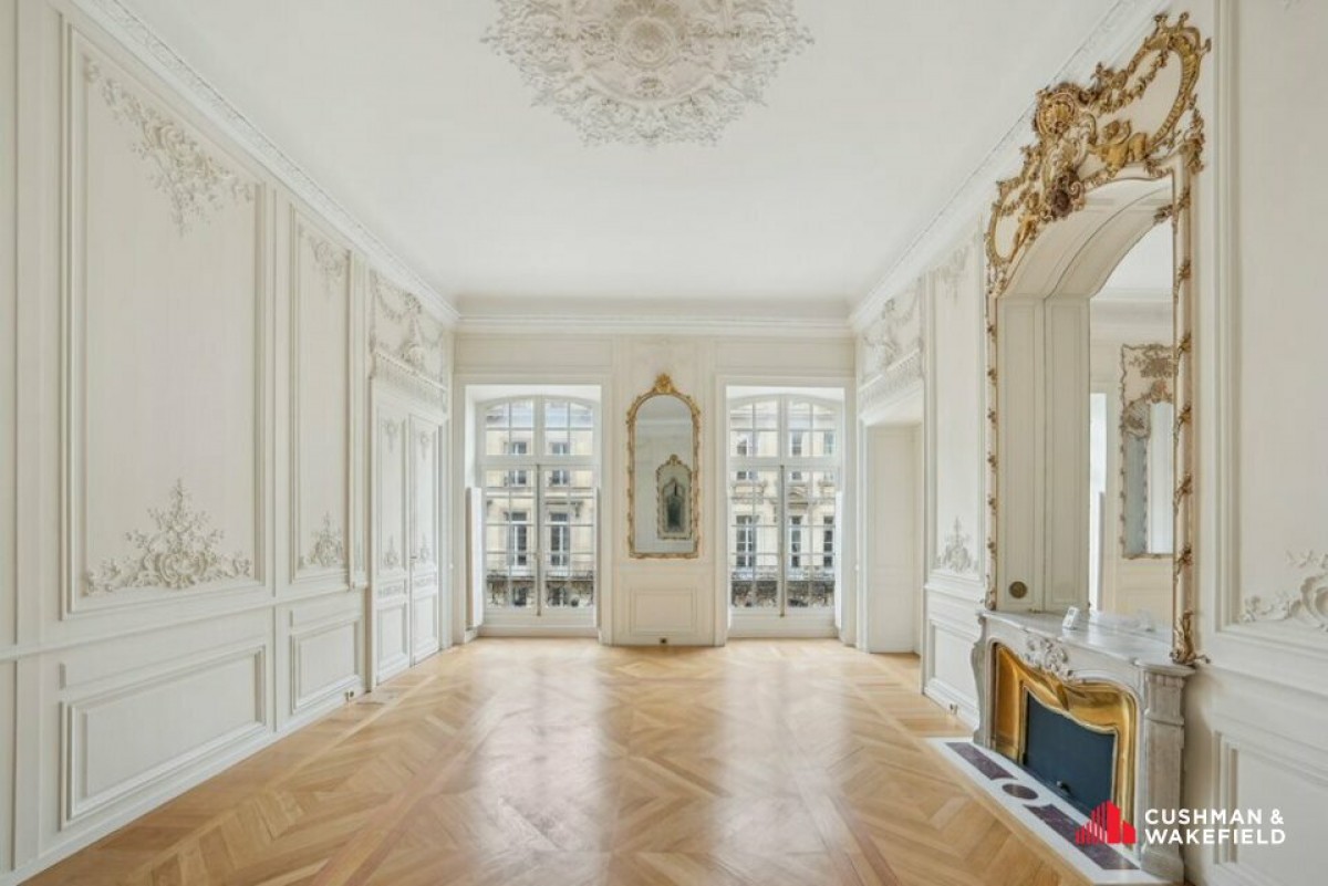 Au 2ᵉ étage, vous découvrirez un plateau traversant composé de bureaux de réception d'exception, comprenant trois vastes salons du XVIIIᵉ siècle, entièrement restaurés et mettant en valeur de superbes éléments d'époque.