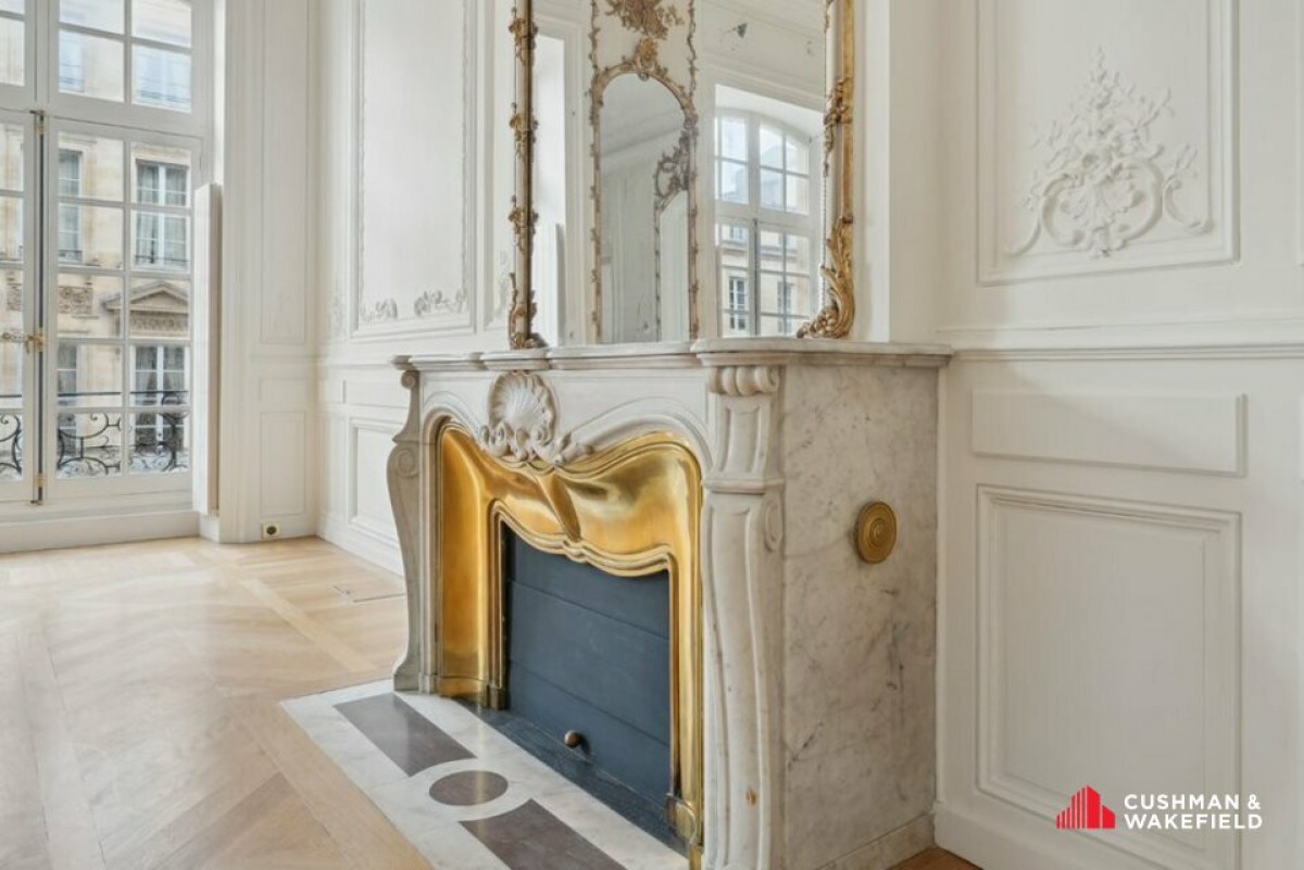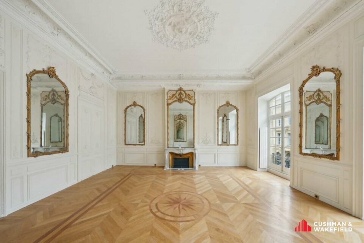 Au 2ᵉ étage, vous découvrirez un plateau traversant composé de bureaux de réception d'exception, comprenant trois vastes salons du XVIIIᵉ siècle, entièrement restaurés et mettant en valeur de superbes éléments d'époque.