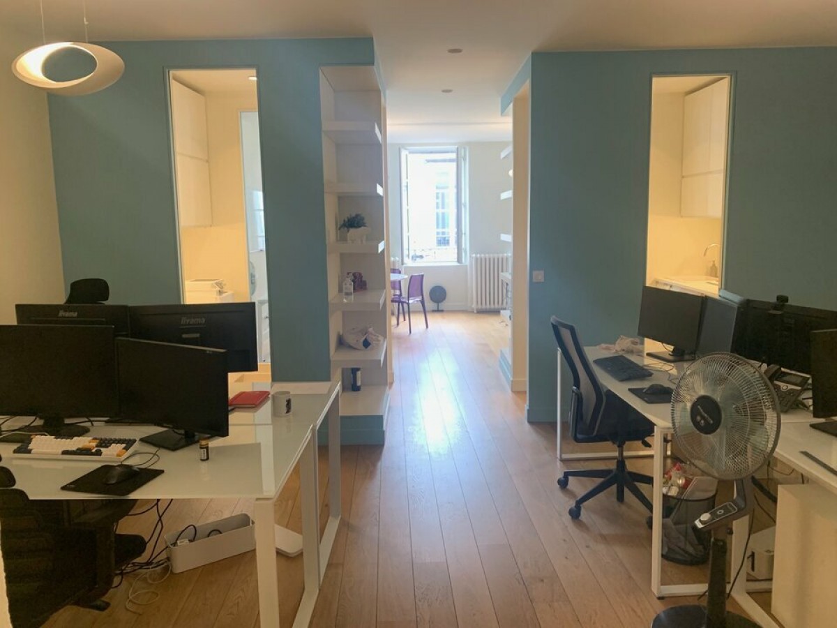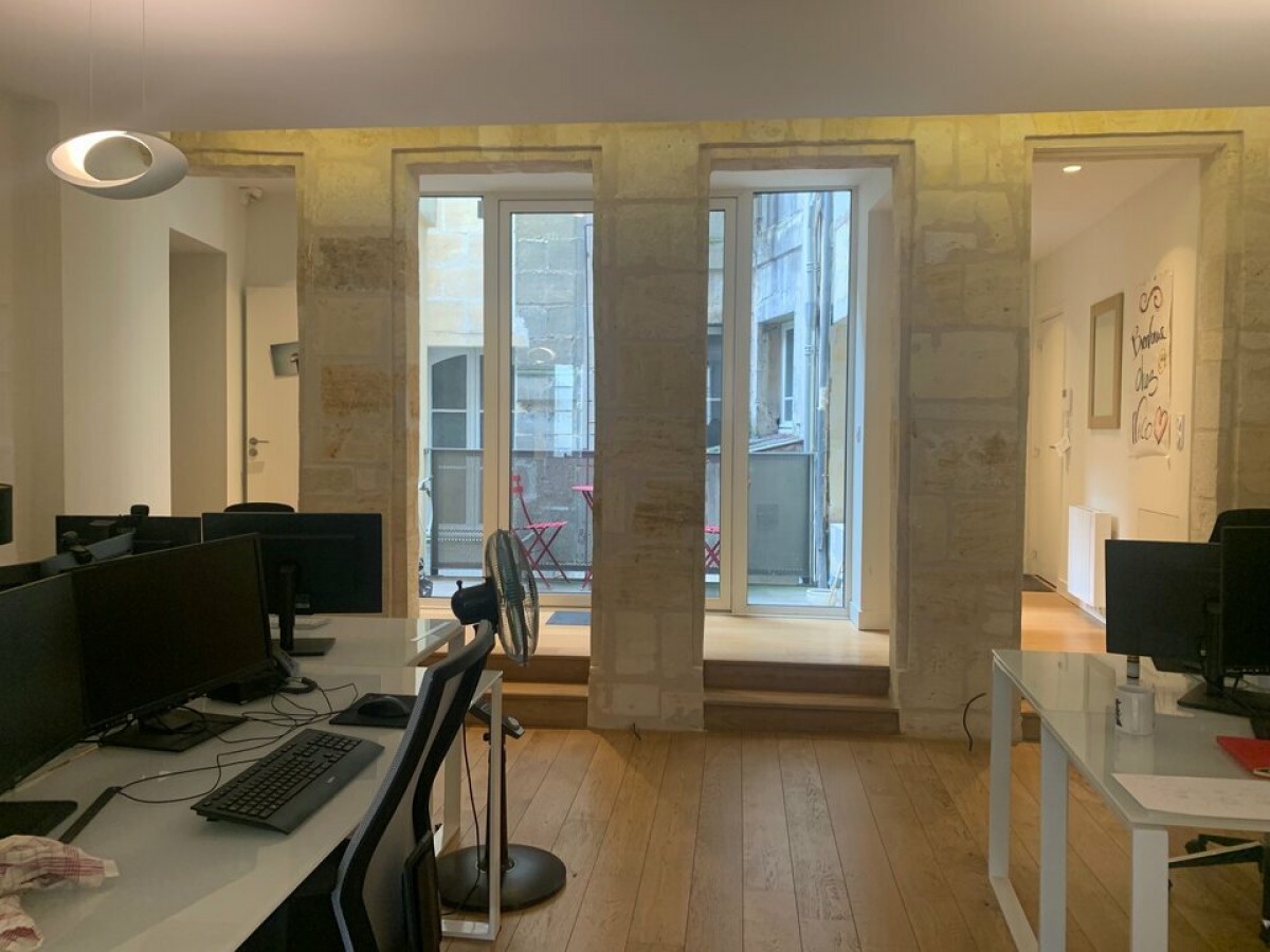 À deux pas de la Place Pey Berland, découvrez ce plateau de bureaux d'environ 75 m², entièrement rénové par un architecte avec des prestations soignées.