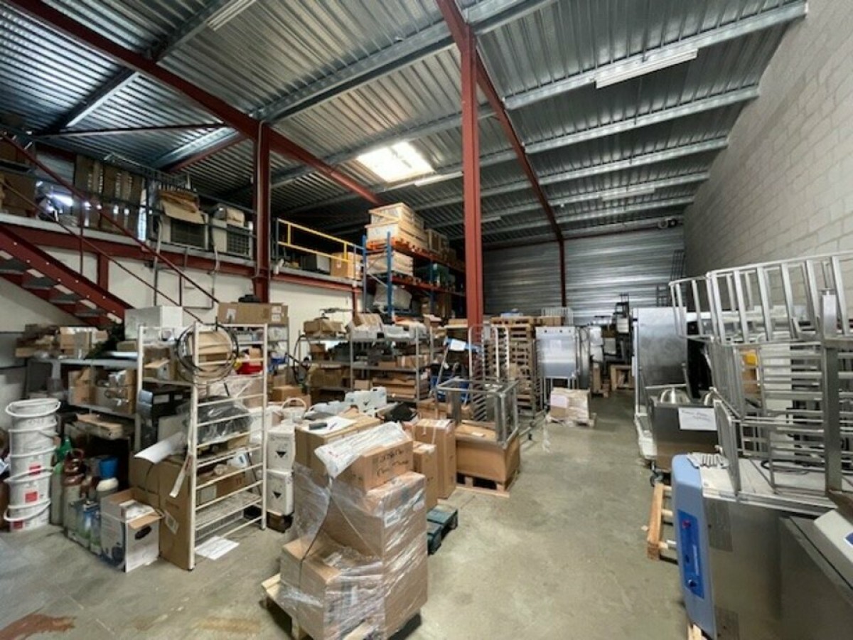 - Entrepôt de 243 m² avec porte sectionnelle (3.50 x 3.50) comprenant un espace atelier d'environ 20m². Hauteur de 6.50m.