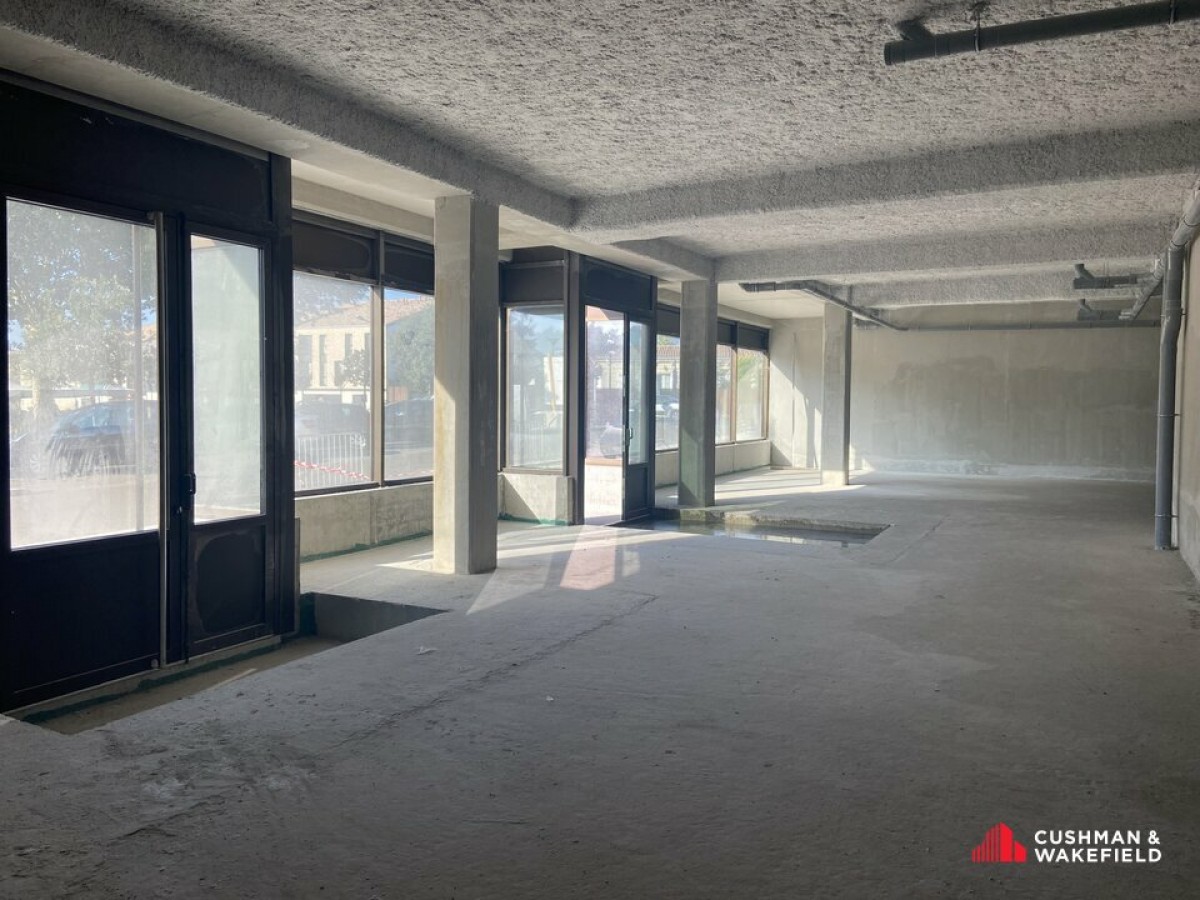 Livraison brute de béton, avec fluides en attente et vitrines/menuiseries posées