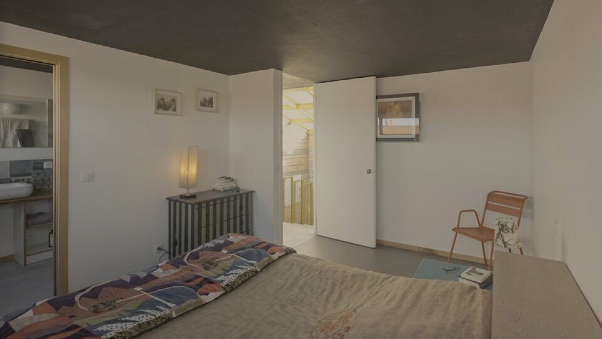 Rénovée en 2017-2018, cette bâtisse 100 % béton offre 178 m² sur 6 niveaux, baignés de lumière.